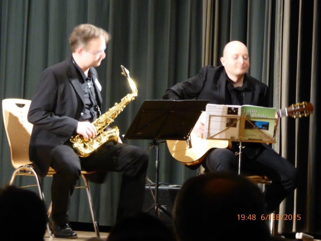 So blieb es nach der feierlichen Enthüllung des Instruments auch den Musiklehrern im Verein vorbehalten, mit dem Zusammenspiel von Flügel, Saxofon, Gitarre und Posaune den künftigen Einsatz des Instruments aufzuzeigen. Und ihren ersten Auftritt vor großem Publikum erlebte Rahel Blumenstock, langjährige Musikschülerin, mit der Sonatina op. 36 Nr. 1 von Mucio Clementi, deren Wiedergabe sie sicher und sehr flüssig absolvierte.