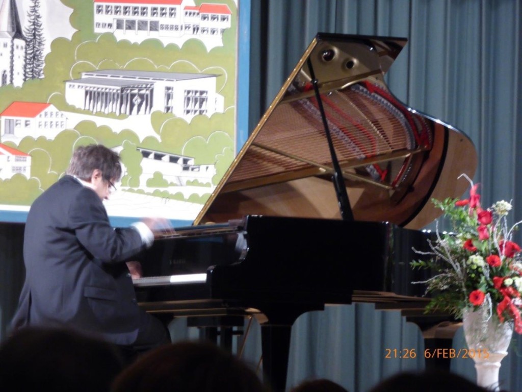 Nach diesem reichhaltigen Auftaktprogramm und einer kleinen kulinarischen Stärkung folgte mit dem Auftritt von Ramin Bahrami und seiner Ehefrau Maria Luisa Veneziano nochmals eine Steigerung, die den Flügel auf Weltklasseniveau trimmte. „Die Schönheit und die Liebe sind immer noch lebendig“ meinte der Künstler, der sonst in den Konzertsälen der ganzen Welt zuhause ist, zur Idee der Anschaffung des Instrumentes. Es folgten mit dem ersten Satz aus dem Italienischen Konzert von Johann Sebastian Bach, der Partita in c-Moll und einer Sonate von Domenico Scarlatti drei Kostproben des Künstlerehepaares, bei denen das Publikum den Atem anhielt. Gewitzte Klangeffekte, tänzerisches Wogen und kraftvolles Spiel ließen die Zuhörer staunen und entführten sie für kurze Zeit in andere, südliche Sphären. Als Zugabe spielte Ramin Bahrami zudem noch die „Aria“ aus den Goldberg-Variationen Bachs, die der Pianist in freundschaftlicher Verbundenheit Gerhard Maas, dem Lieferanten des Flügels, widmete. Natürlich folgten zum Schluss Dankesworte an die Beteiligten des Abends, vor allem an das Team um Manuela Flurer-Wiedmann, die als Organisatorin des Abends auch die Moderation dazu übernahm.