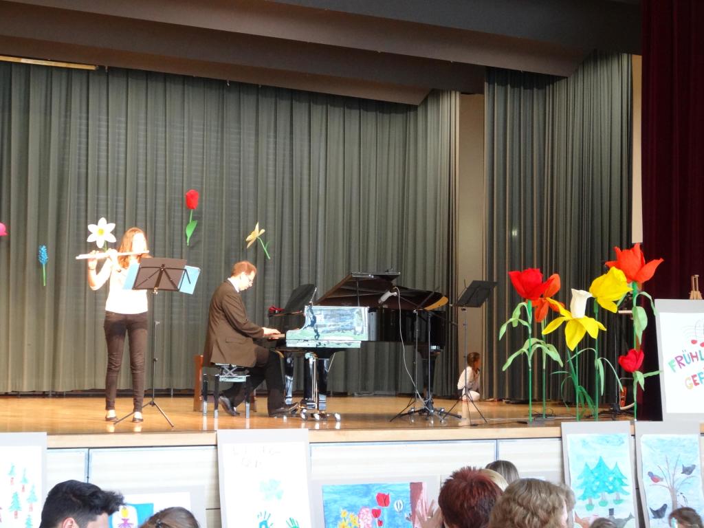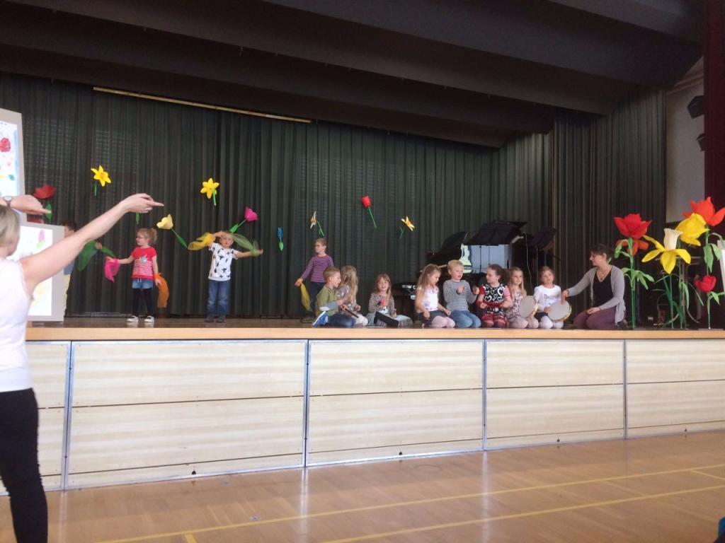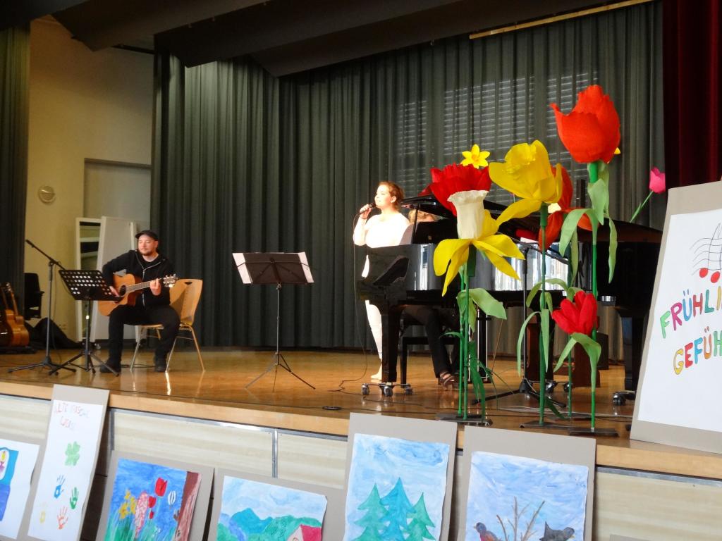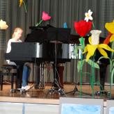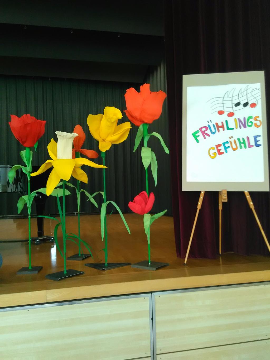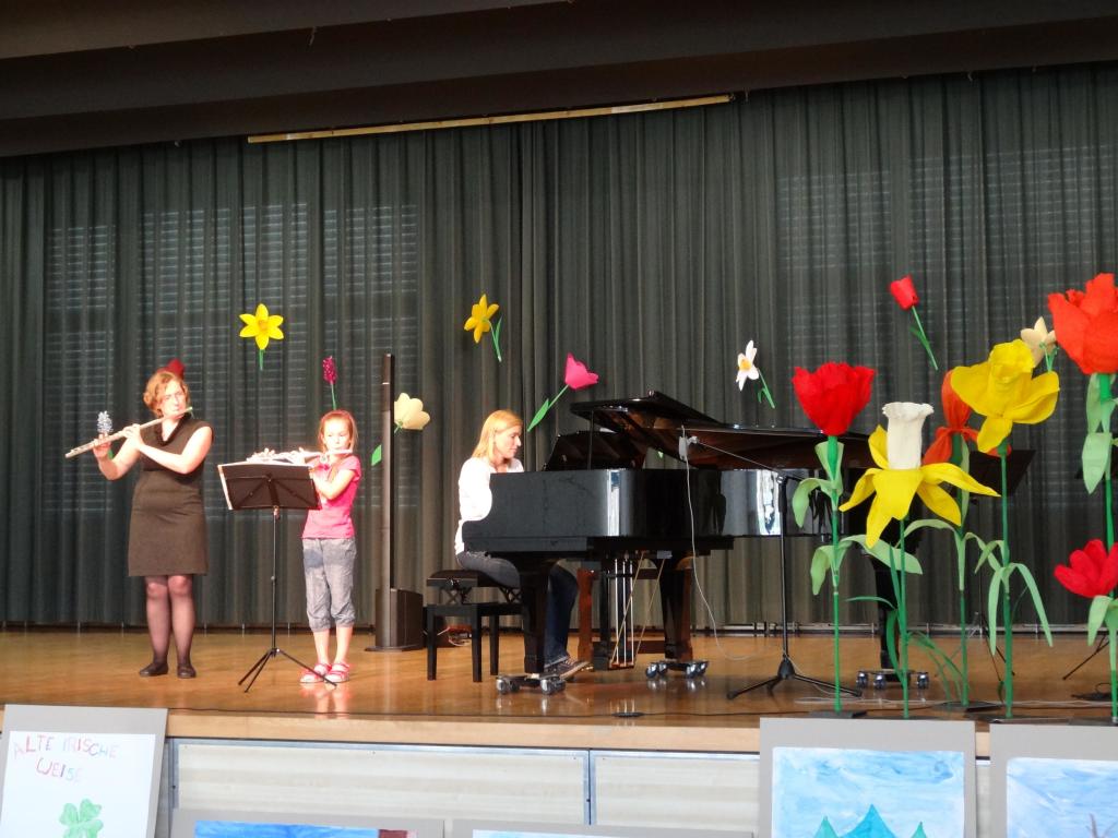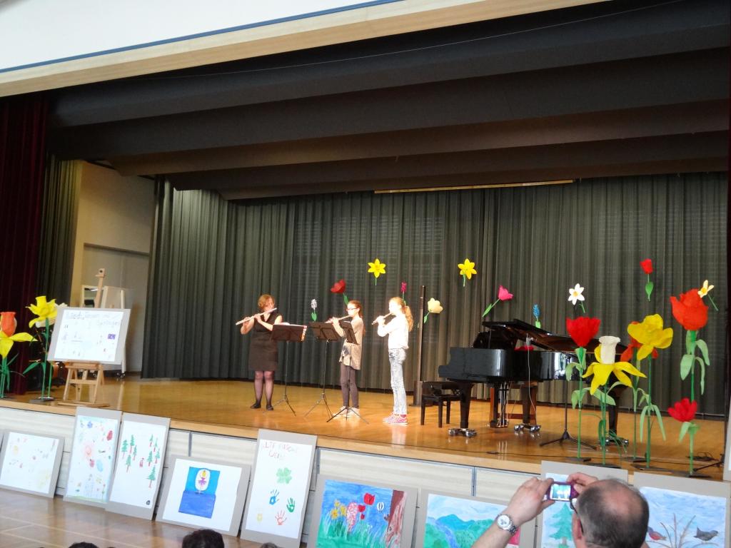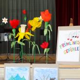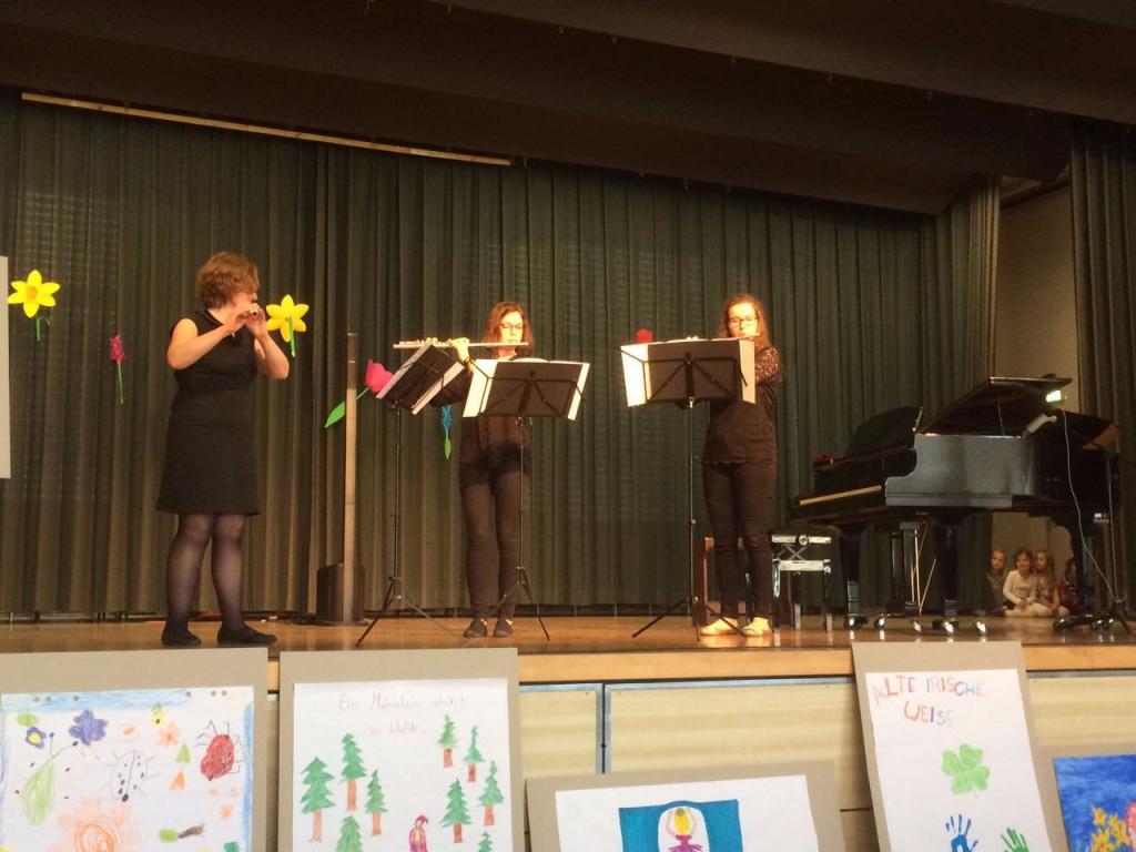 Die Kinder der Musikfantasie eröffneten das Programm mit einem Frühlingstanz. Als besondere Idee durften in diesem Jahr alle Musikschüler zu ihren dargebotenen Musikstücken Poster malen, die die Musikschüler des 1. und 2. Schuljahrs mit viel Engagement zu jedem Liedbeitrag oder Ensemble auf der Staffelei austauschten. Getreu dem Motto wurde mit Volksliedern, wie der Vogelhochzeit und fröhlichen klassischen Melodien, wie einem fröhlichen Marsch oder einem Scherzino die "Frühlingsgefühle" geweckt. Nicht zuletzt rundeten bekannte oder auch weniger bekannte Frühlingsgedichte das abwechslungsreiche Musikprogramm ab. Gelungen waren vor allem die teils bunt gemischten Ensembles, die es verstanden, das Publikum mit ihren musikalischen Darbietungen zu begeistern. Oft auch auf der Bühne unterstützt von den engagierten Musiklehrern des Musikschulvereins.