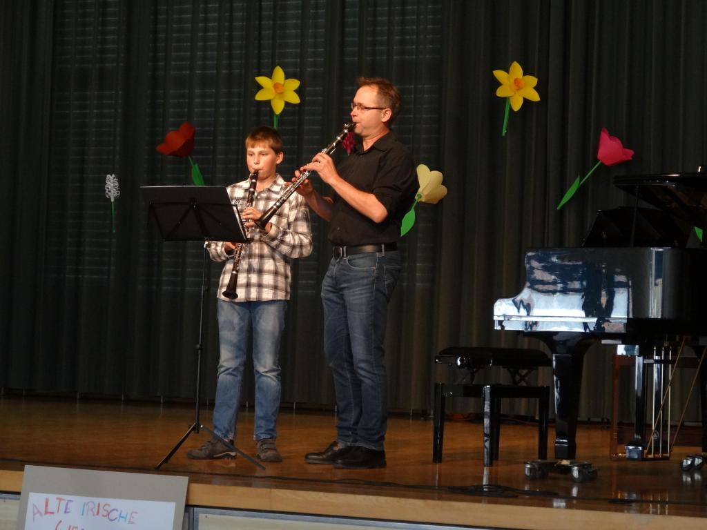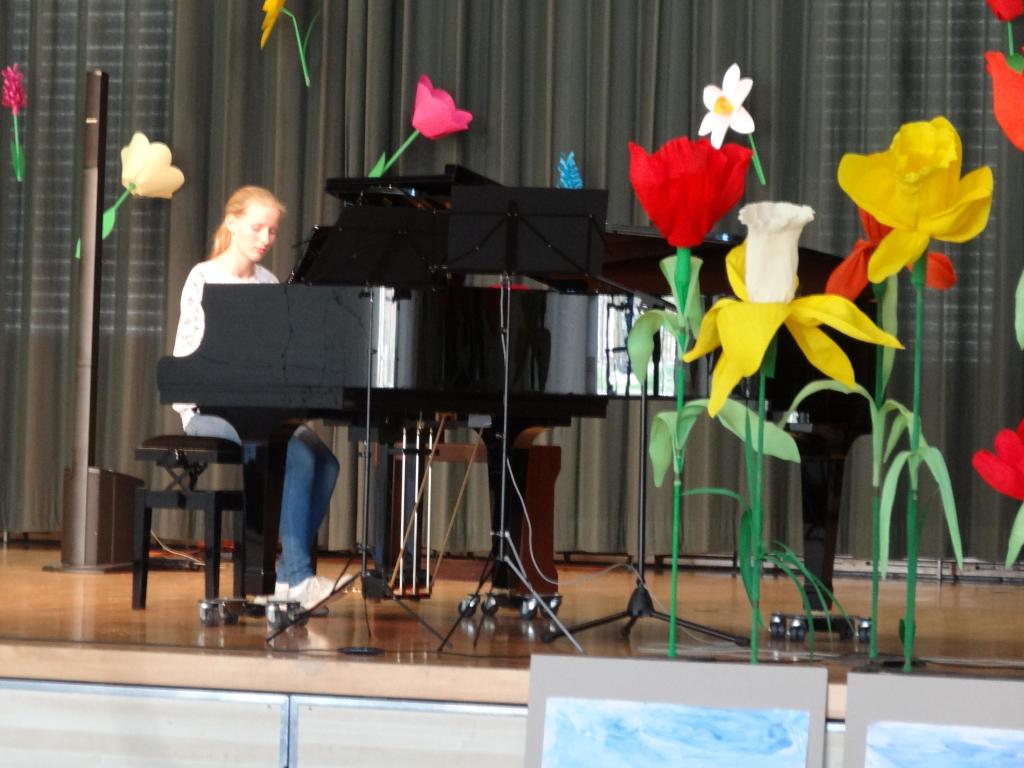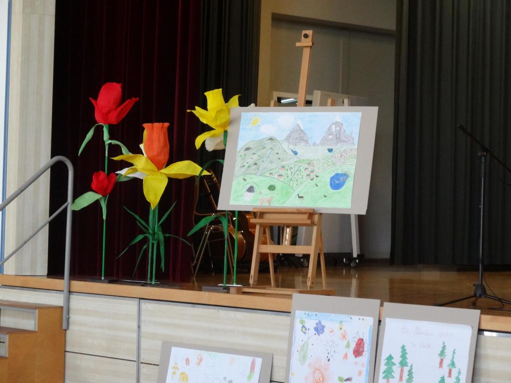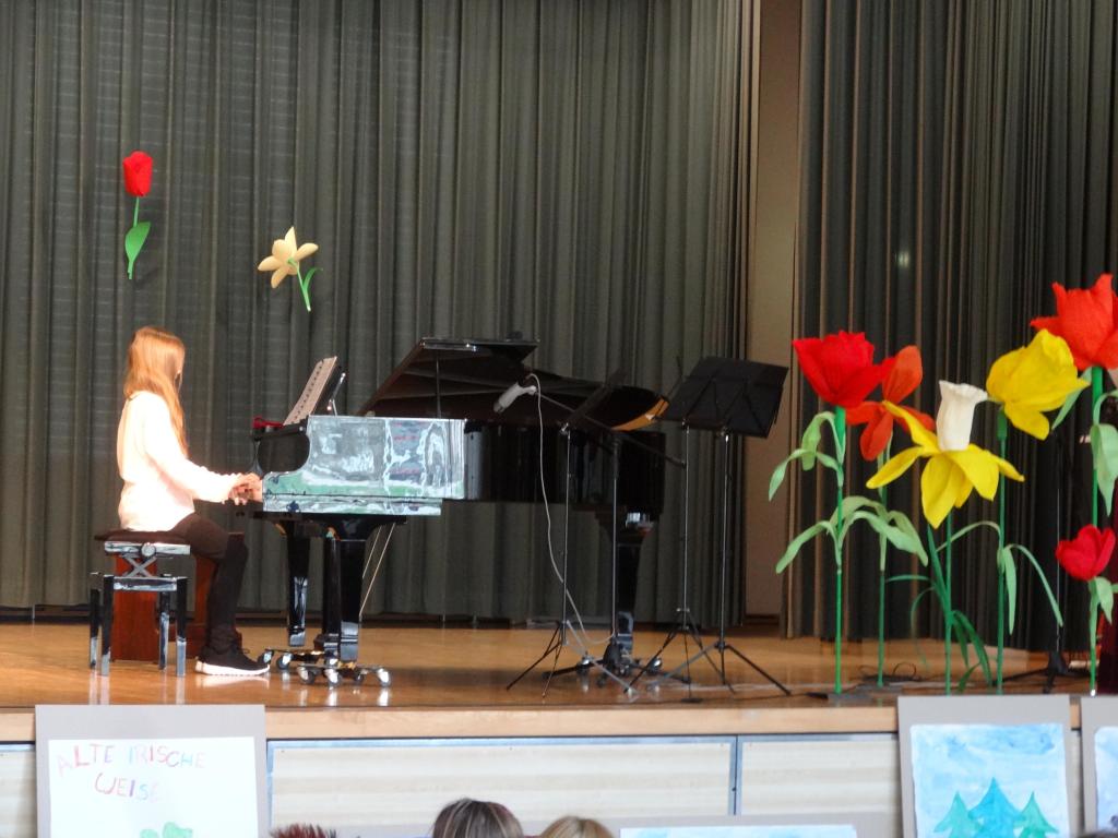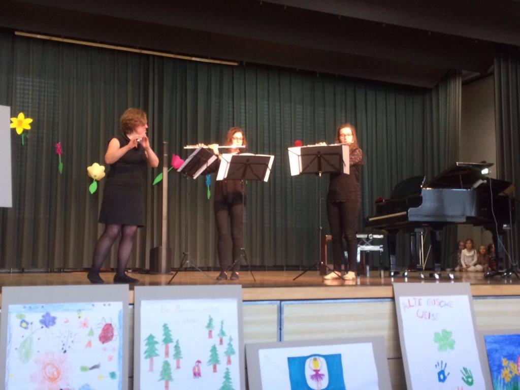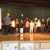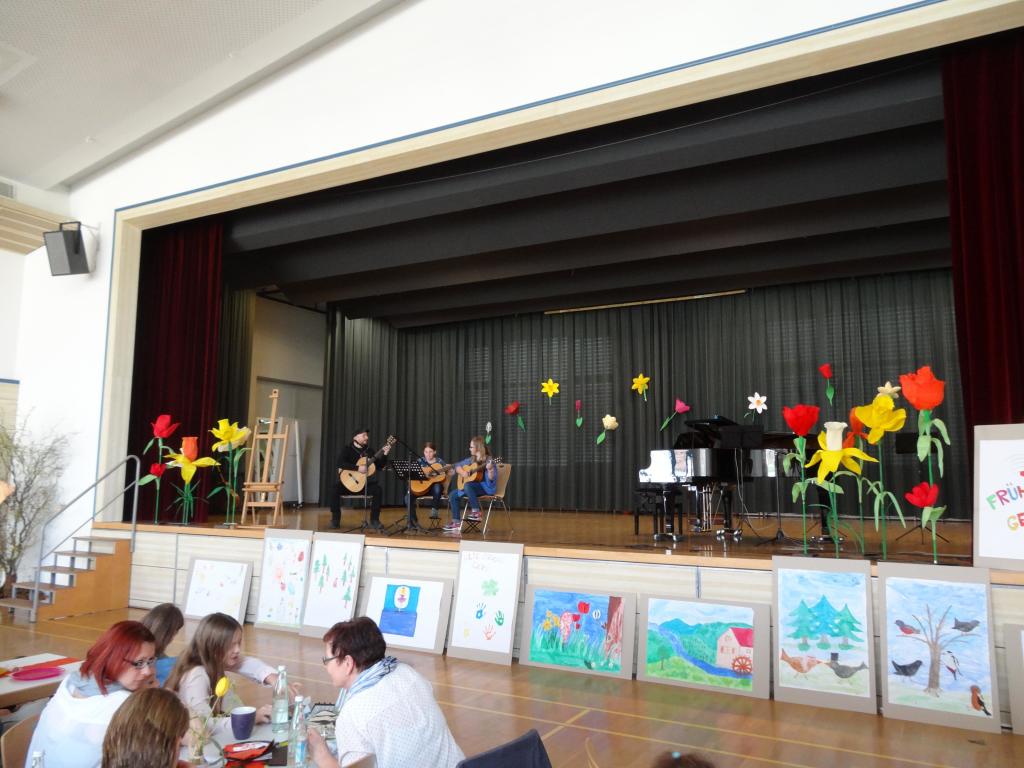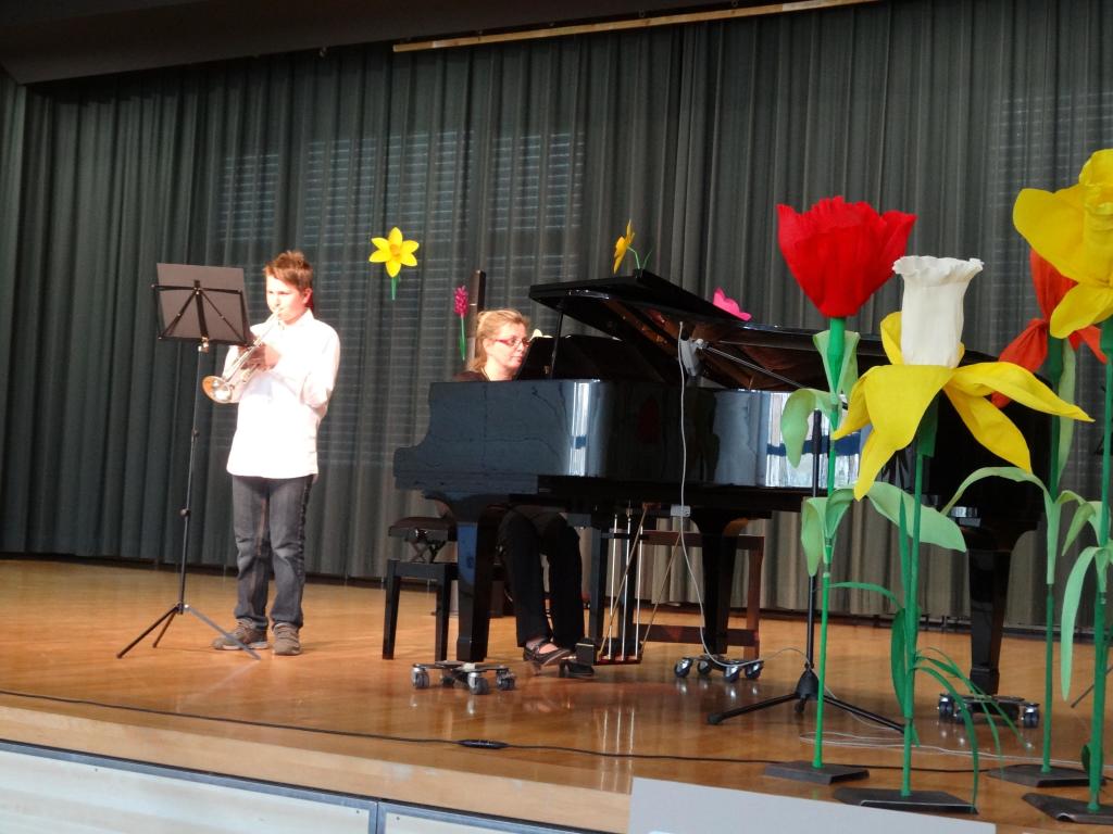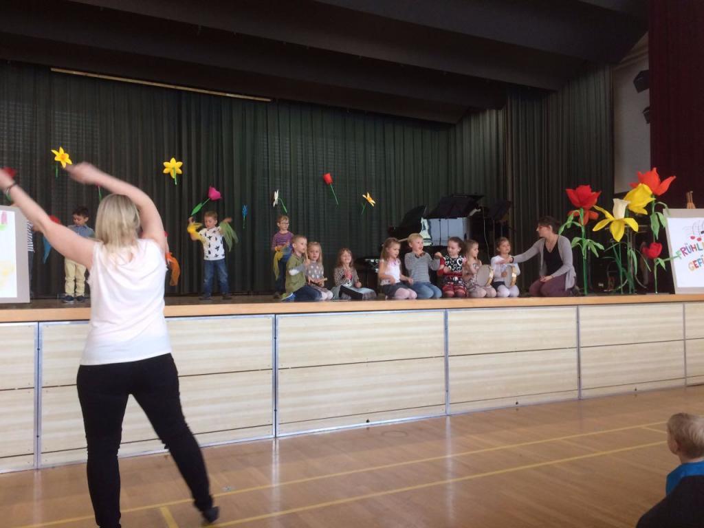 Die Kinder der Musikfantasie eröffneten das Programm mit einem Frühlingstanz. Als besondere Idee durften in diesem Jahr alle Musikschüler zu ihren dargebotenen Musikstücken Poster malen, die die Musikschüler des 1. und 2. Schuljahrs mit viel Engagement zu jedem Liedbeitrag oder Ensemble auf der Staffelei austauschten. Getreu dem Motto wurde mit Volksliedern, wie der Vogelhochzeit und fröhlichen klassischen Melodien, wie einem fröhlichen Marsch oder einem Scherzino die "Frühlingsgefühle" geweckt. Nicht zuletzt rundeten bekannte oder auch weniger bekannte Frühlingsgedichte das abwechslungsreiche Musikprogramm ab. Gelungen waren vor allem die teils bunt gemischten Ensembles, die es verstanden, das Publikum mit ihren musikalischen Darbietungen zu begeistern. Oft auch auf der Bühne unterstützt von den engagierten Musiklehrern des Musikschulvereins.