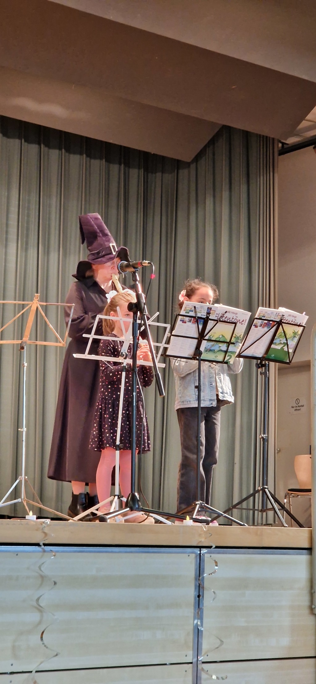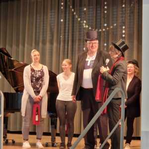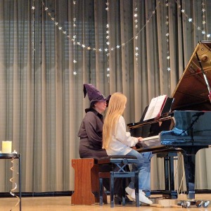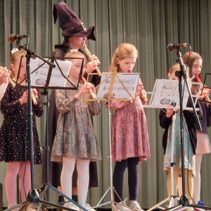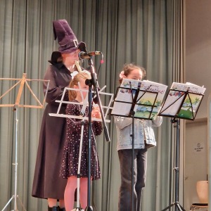 Schon beim Betreten des Saals wurde klar: Dieser Nachmittag würde besonders werden. Die Bühne war liebevoll mit magischen Requisiten dekoriert, wobei ein riesiger Zylinder als markanter Blickfang hervorstach. Auch die Vorsitzende der Musikschule, Manuela Flurer-Wiedmann, griff das Thema optisch auf: Mit Zylinder und Charme führte sie als Moderatorin durch das abwechslungsreiche Programm. Unterstützt wurde die mystische Atmosphäre durch die Musiklehrkräfte, die passend zum Motto unter anderem als Hexe verkleidet erschienen.