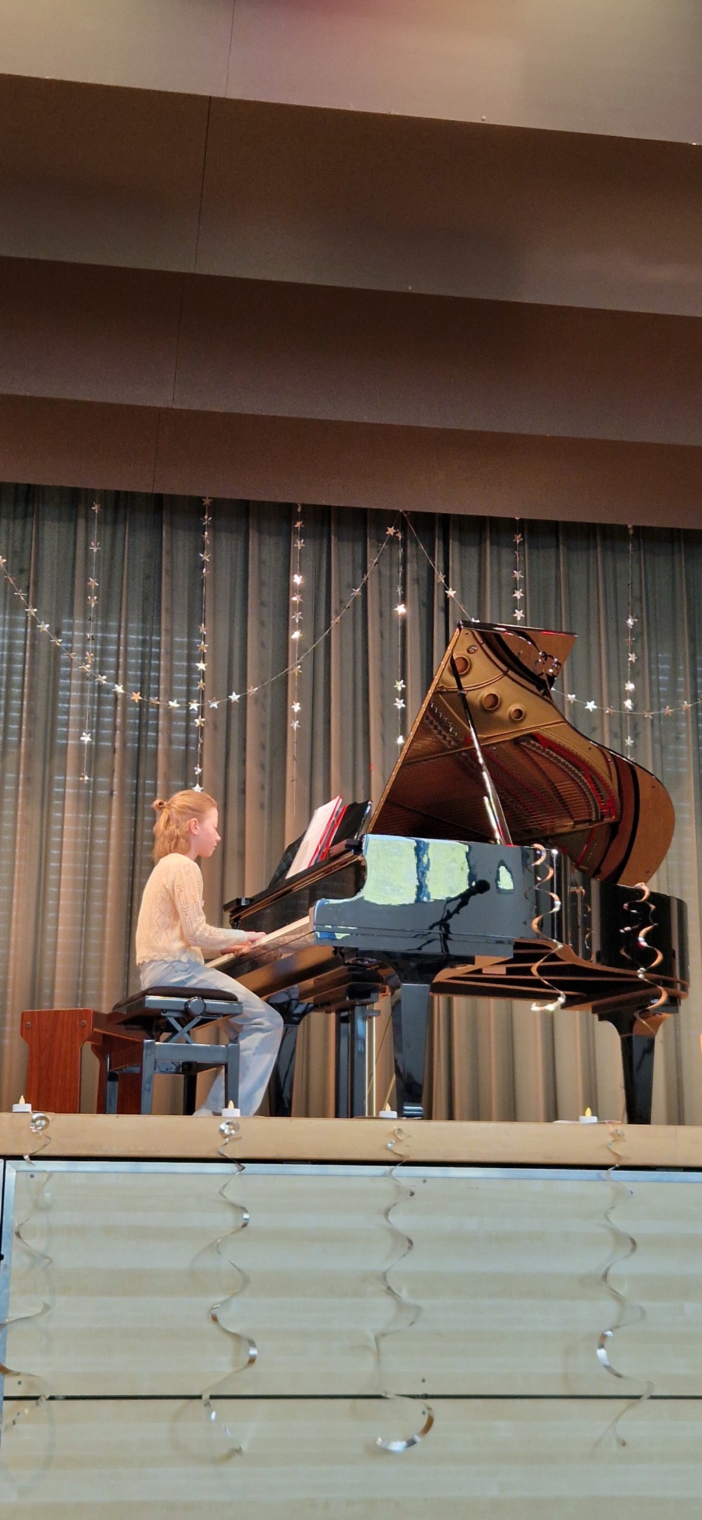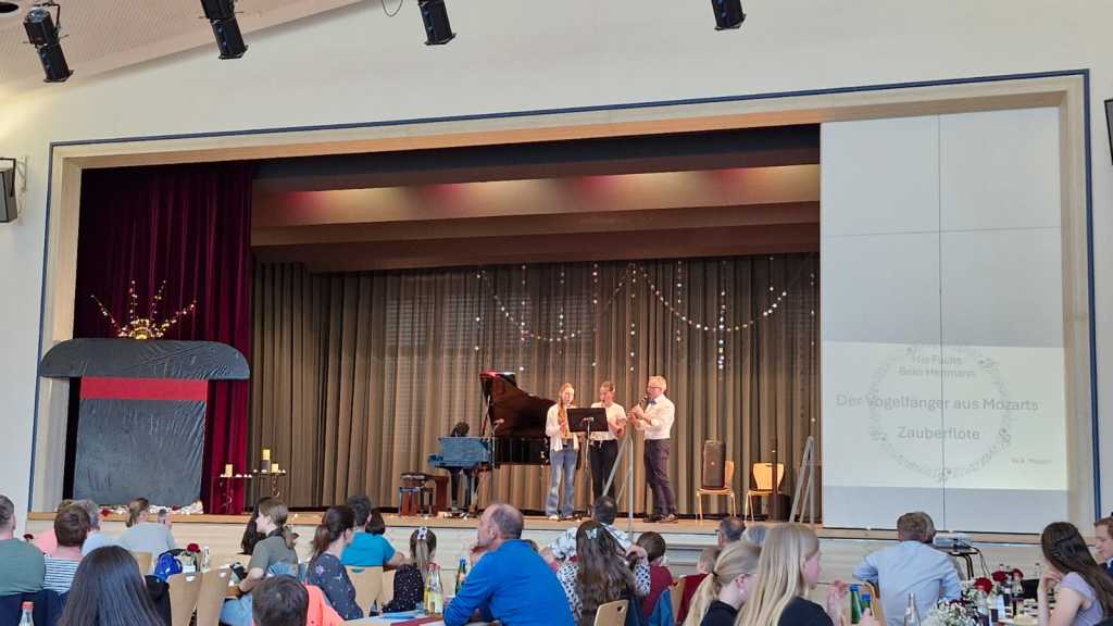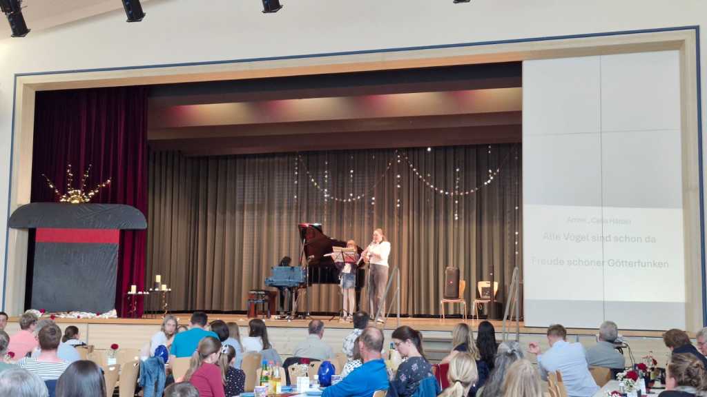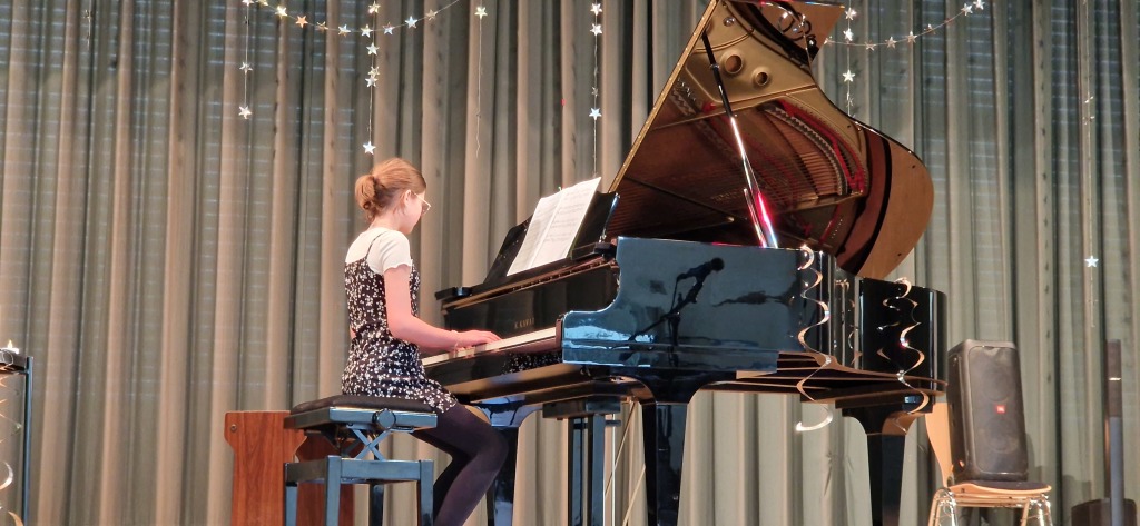 Insgesamt 27 musikalische Beiträge hatten die Kinder und Jugendlichen vorbereitet. Die Bandbreite war beeindruckend: Klassische Klänge von Mozart trafen auf die modernen Soundtracks der Filmgeschichte. Mal fühlten sich die Zuhörer in die Hallen von Hogwarts zu Harry Potter versetzt, mal ging die Reise mit den monumentalen Klängen von Star Wars in weit entfernte Galaxien. Die Begeisterung der Eltern, Großeltern und Geschwister im Saal war spürbar – jeder Vortrag wurde mit großem Applaus belohnt.