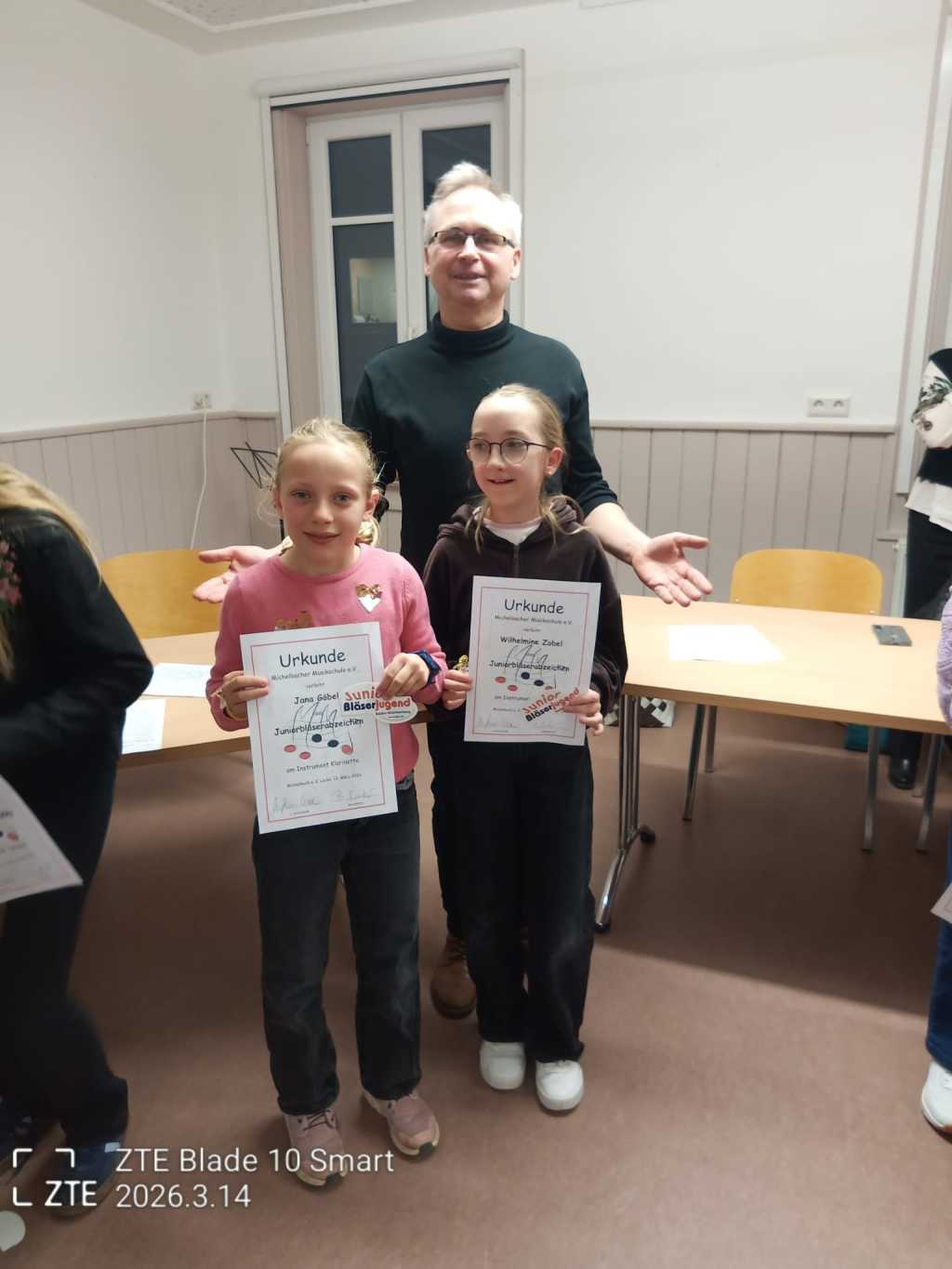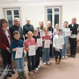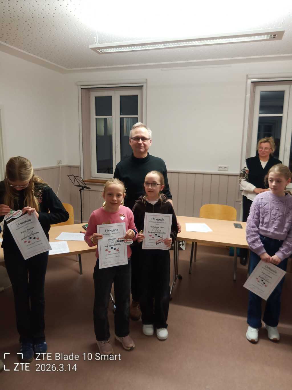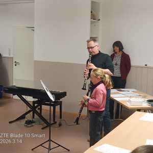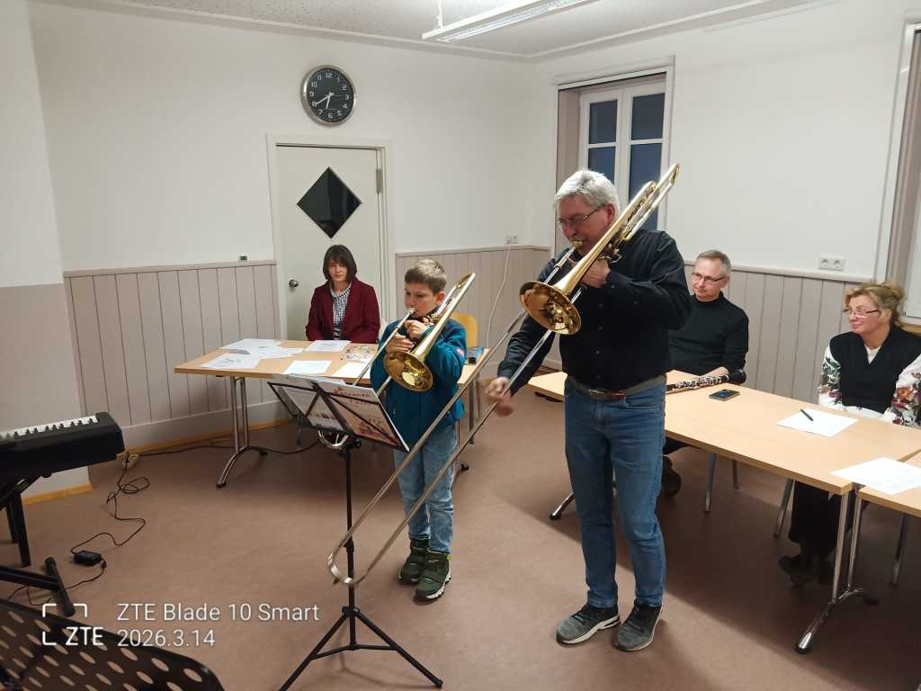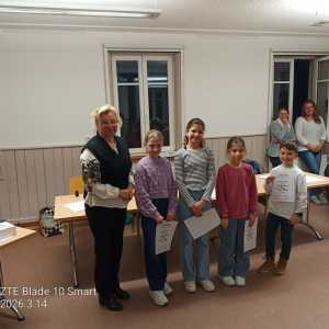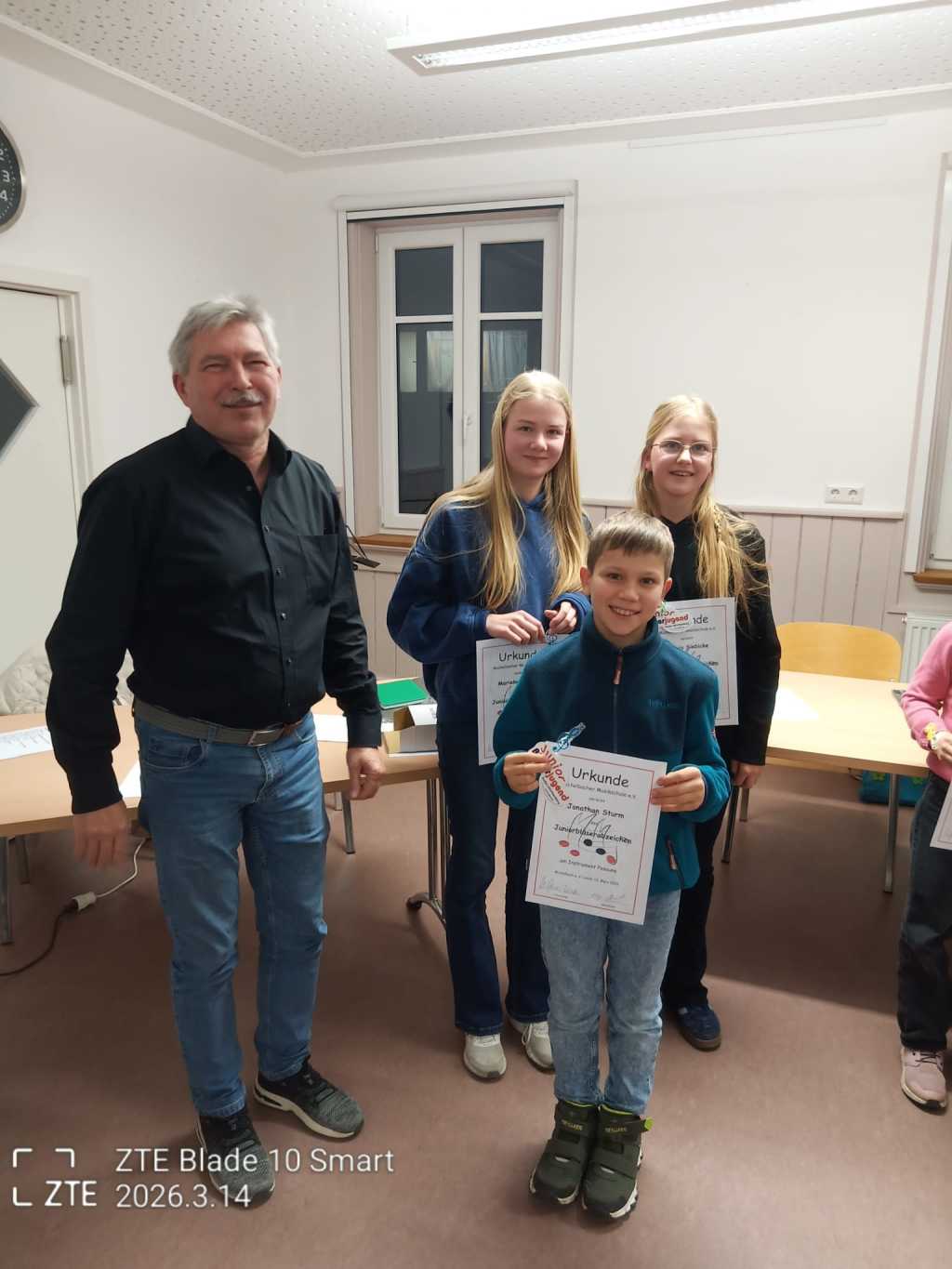 Ein besonderer Programmpunkt waren die Prüfungen zum Musikabzeichen. Die Musikschüler traten in verschiedenen Gradstufen an und zeigten an ihren Instrumenten, was sie gelernt haben. Die vorgetragenen Stücke waren Teil der offiziellen Prüfung, die die Schüler direkt vor den Ohren der Versammlung erfolgreich ablegten. Der Applaus der Anwesenden war ihnen nach der Aufregung sicher.